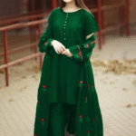 Step into style with this exquisite Women’s Stitched Gown Suit. Crafted from luxurious silk and adorned with intricate embroidery, this 3 pieces set offers a perfect blend of tradition and modernity. The comfortable round neck and plain trouser provide versatility for any occasion, making it an ideal addition to your wardrobe.